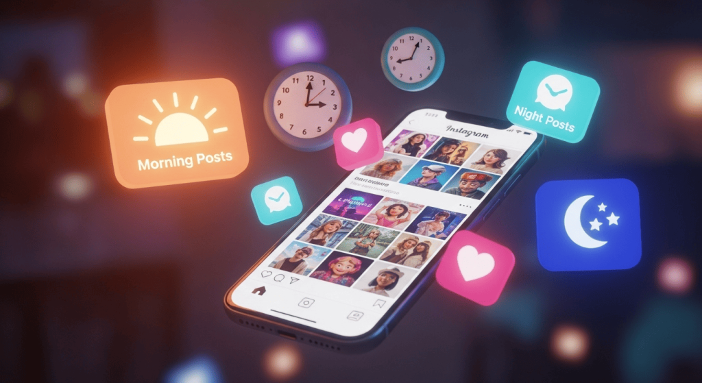 Em 2025, o Instagram atualizou completamente o comportamento da aba “Explorar” e do feed principal. Agora, o sistema analisa três camadas de tempo: o momento em que você posta, a velocidade de engajamento inicial e a consistência semanal do perfil.